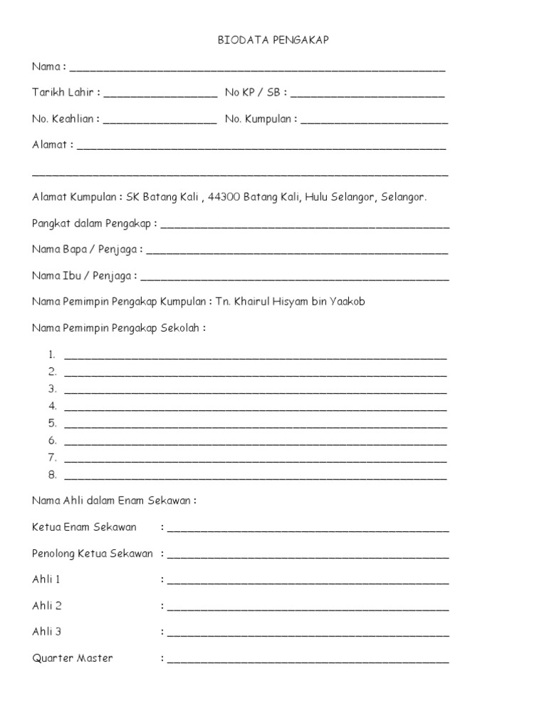 Biodata Pengakap Kanak Kanak Untuk Buku Log Pdf